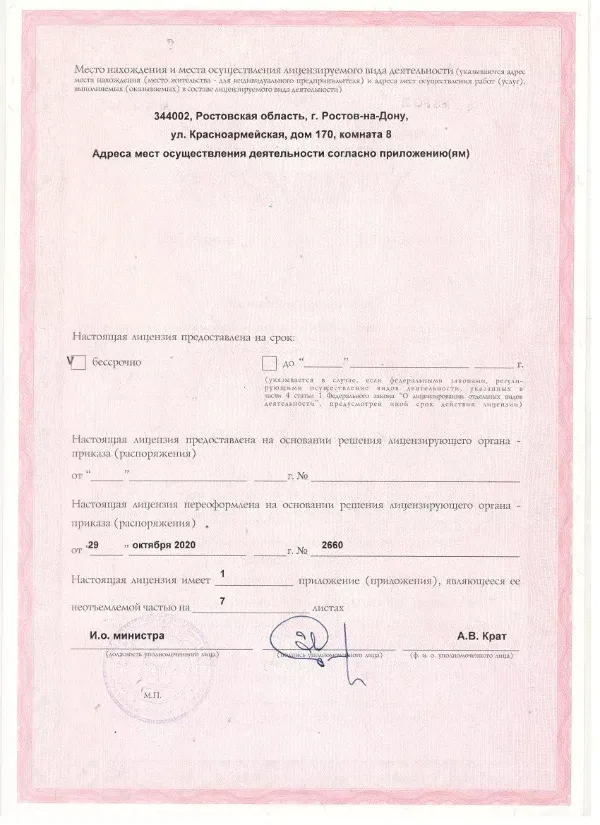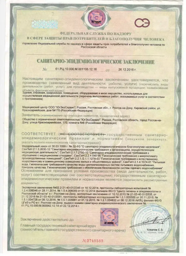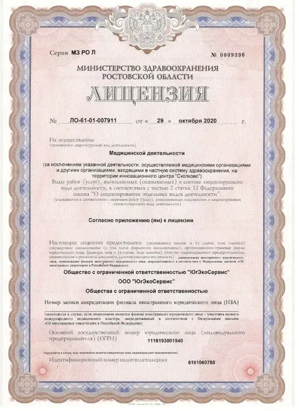 Медицинские услуги оказываются ООО "ЮгЭкоСервис+" по лицензии ЛО-61-01-008143 от 28.12.2021 г.